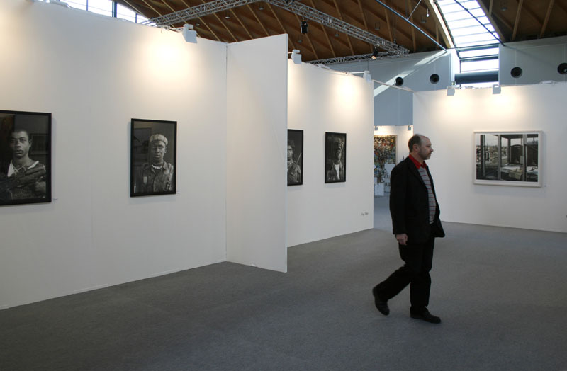 Sonderausstellung Zeitgenössische südafrikanische Kunst aus privaten Sammlungen. Vier Arbeiten von Guy Tillim, im Hintergrund eine Arbeit von David Goldblatt.
