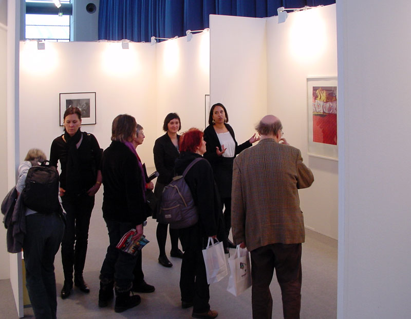 Sonderausstellung Zeitgenössische südafrikanische Kunst aus privaten Sammlungen. Dorina Hecht und Yvette Mutumba bei einer Führung durch die Ausstellung vor einer Arbeit von Kay Hassan.