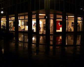 Jetzt folgte Risiko. Von Zentrum-Randlage mitten hinein ins Geschehen. Die Galerie in der Gerberstraße bei Nacht.