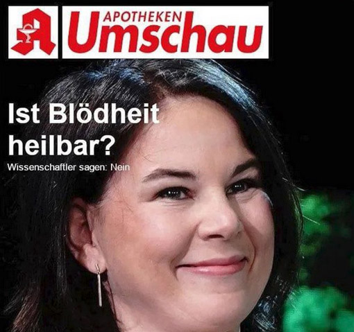 Die Frau Außenministerin war vier Mal gespritzt als sie kürzlich von "Corona" umgenietet wurde. Sie sagt geimpft. Da ich zu der Kategorie "Schwurbler und andere Idioten" gehöre, wie mich heute "Die Welt" bezeichnete, sage ich: "Sie hat viermal ihre Gene traktiert." Zwei Wochen sei sie im Bett gelegen und komme, so heute, bis heute kaum eine Treppe hoch. Sie möchte dennoch Russland vernichten, denn Putin ist an allem schuld.