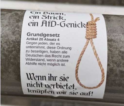 Durch die Merkelsche Mauer befindet sich Deutschland in einer Sackgasse, die nun auch nach hinten zu ist. Die grüne Stalinistin baute mit der Brandmauer eine neue Variante des anitfaschistischen Schutzwalls, den die Grünen mit ihrer Blockpartei im Anhang nun eisern verteidigen. Die Probleme die in Deutschland herrschen, können nun nicht angesprochen werden, weil die zu Faschisten erklärte AfD sie seit Jahren benennt. Würde man deren Probleme anerkennen, wäre man ja selbst Faschist. Geht gar nicht, so die verqueere Logik, obwohl sie selbst es ja sind. Zugrunde liegt dieser Faschismusideologie der propagandistisch von Stalin verdrehte Begriff des Antifaschismus. Eigentlich ein linker Bruderkampf Internationalkommunisten gegen Nationalkommunisten und Nationalsozialisten. Schon Lenin sagte den heiligen Satz, dass der gefährlichste Gegner der Feind in den eigenen Reihen sei.