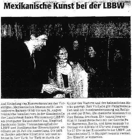 At: Landesbank Baden-Württemberg Initiator: Honorary Consulat of Mexico Curator: Peter Herrmann. Stuttgart, Berlin Stuttgart 2001
